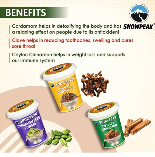 Snowpeak Combo of Cardamom Powder (50g), Clove Granules (50g) & Ceylon Cinnamon (40g)